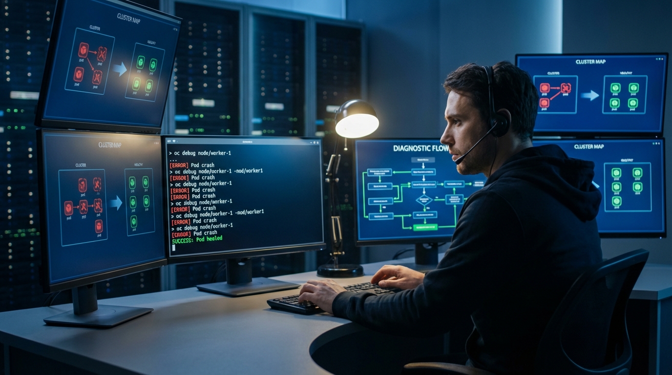 • Complete troubleshooting methodology for cluster updates, persistent storage issues, networking problems, application failures, and node issues. Real scenarios, real solutions, real confidence.